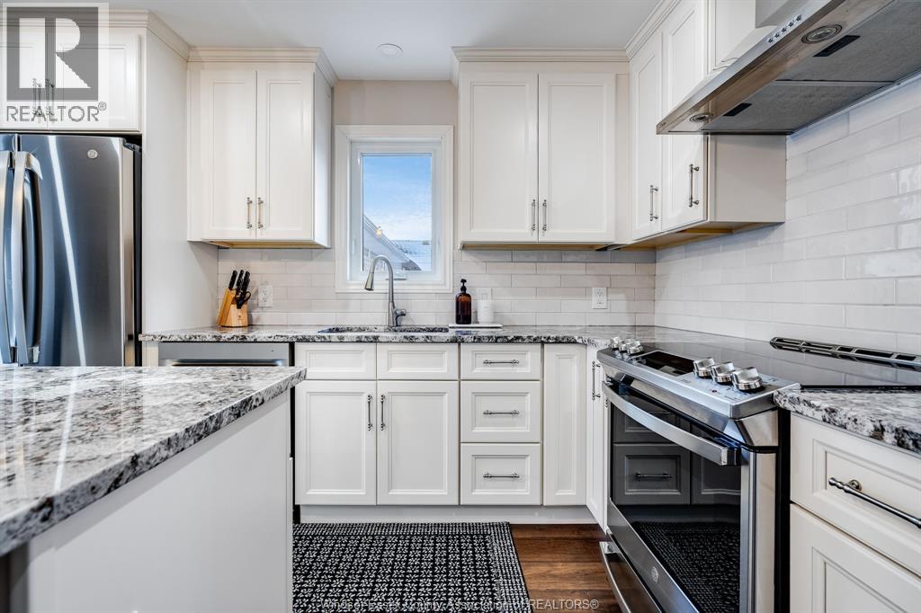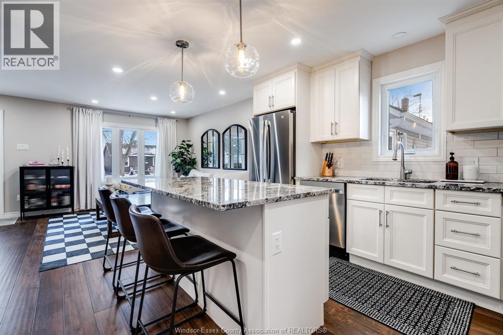 Cute as a button 2 bedroom, 1 bathroom home in a central Windsor location. Extensive renovations tastefully completed in 2025, designed for owner occupancy with quality materials and finishes throughout. Updates include new flooring, windows, interior and exterior doors, trim, kitchen with island and granite countertops, bathroom with walk in shower. Exterior updates include new siding, front porch, poured concrete front walkway, and a concrete patio in the backyard. Furnace and AC 2021. (id:4555)