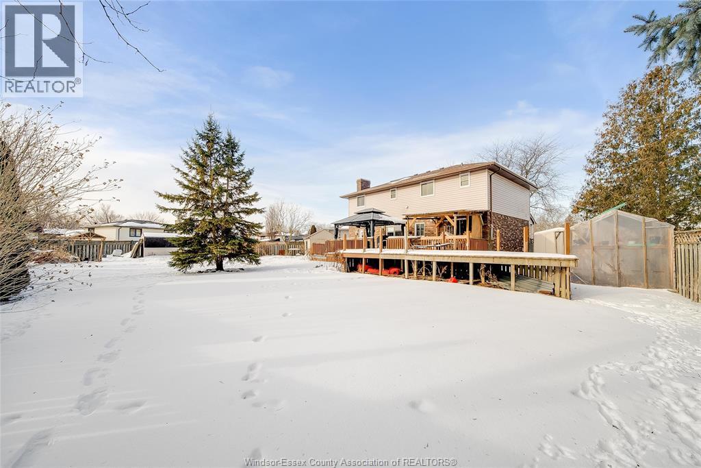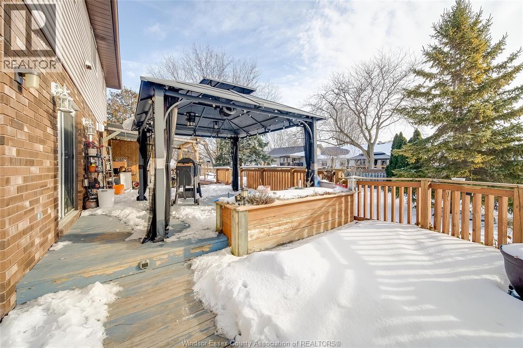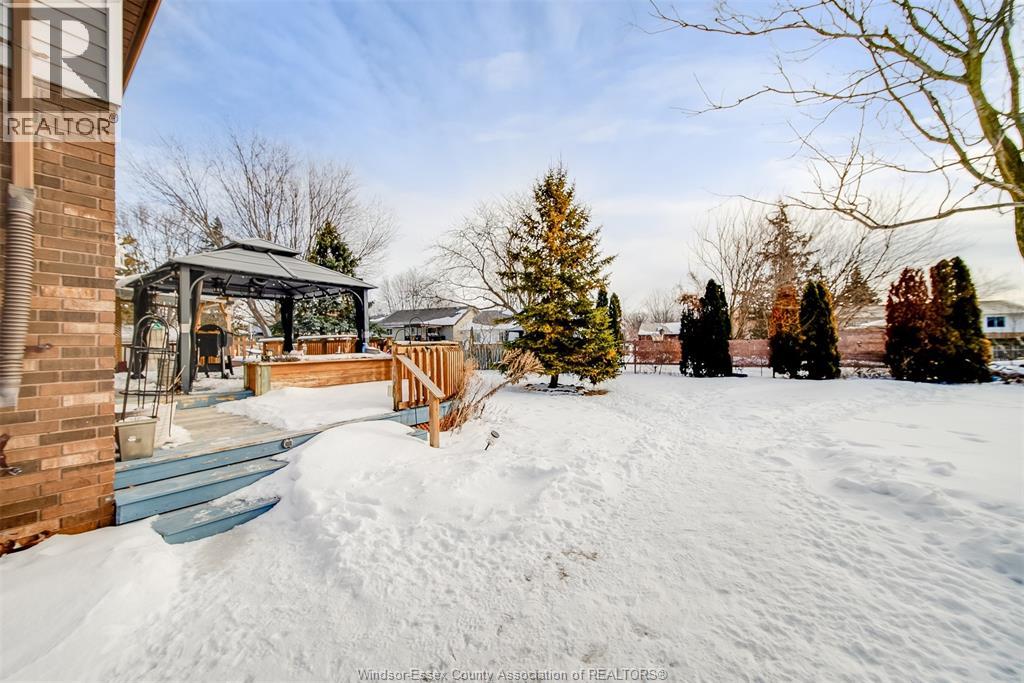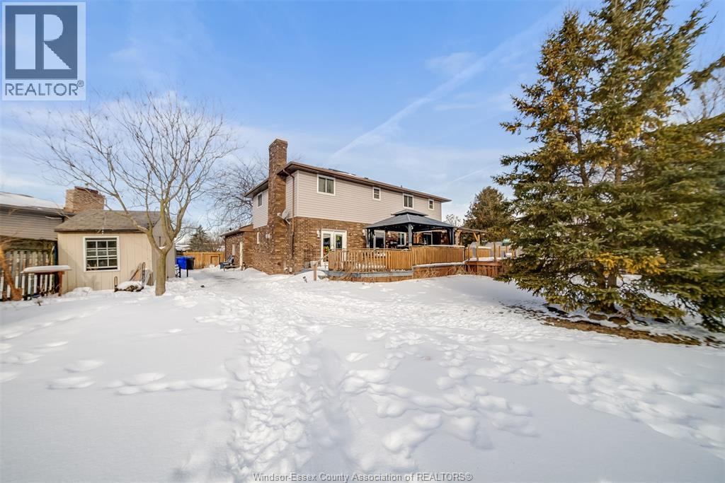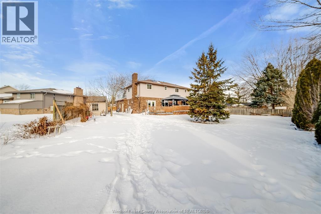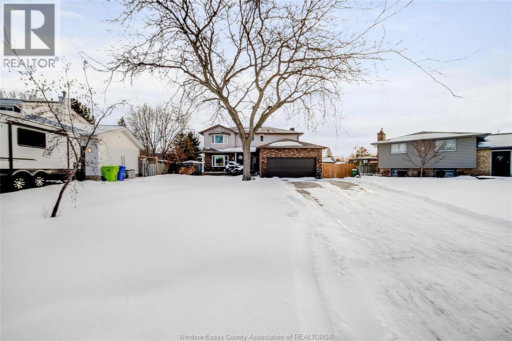 Welcome to this well-located family home on an oversized pie-shaped lot in one of Belle River’s quiet, tree-lined crescents. One of the larger lots on the street, offering added space and privacy. This 4+1 bedroom home features a spacious primary bedroom with ensuite and bright living areas enhanced by skylights and natural light. The kitchen and dining area were remodeled in 2019 and showcase an oversized granite island with seating for six, granite countertops, and porcelain flooring throughout the main floor. The sunken family room is open to the kitchen and provides two patio walk-outs, creating a functional layout for everyday living and entertaining. The second-floor bathroom has been recently renovated and includes convenient laundry. A generous backyard provides ample space for outdoor living and entertaining, complemented by a front yard sprinkler system for easy maintenance. Located in a family-friendly neighbourhood close to schools, restaurants, parks, and the marina — a solid opportunity in a desirable Belle River location. (id:4555)