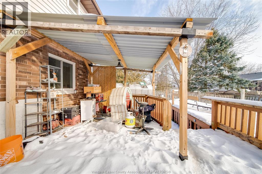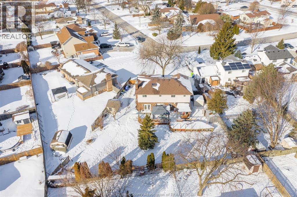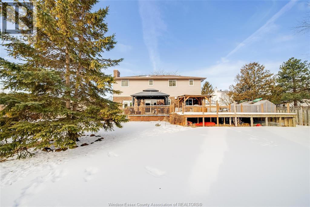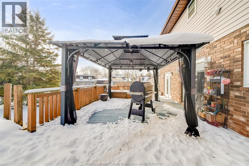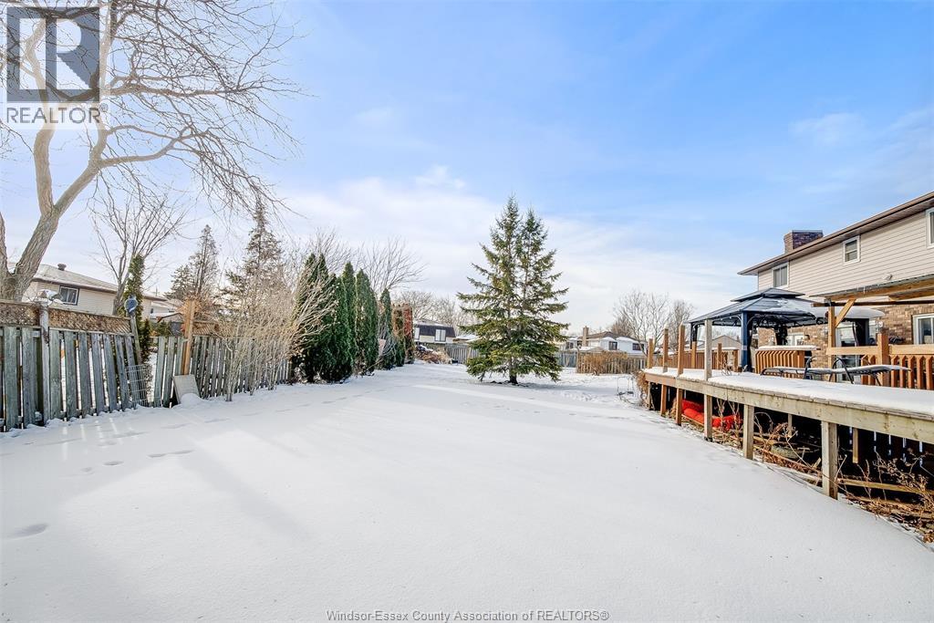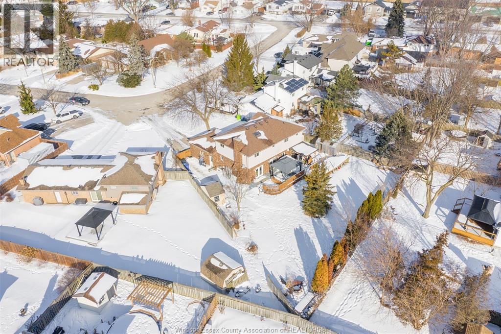 Welcome to this well-located family home on an oversized pie-shaped lot in one of Belle River’s quiet, tree-lined crescents. One of the larger lots on the street, offering added space and privacy. This 4+1 bedroom home features a spacious primary bedroom with ensuite and bright living areas enhanced by skylights and natural light. The kitchen and dining area were remodeled in 2019 and showcase an oversized granite island with seating for six, granite countertops, and porcelain flooring throughout the main floor. The sunken family room is open to the kitchen and provides two patio walk-outs, creating a functional layout for everyday living and entertaining. The second-floor bathroom has been recently renovated and includes convenient laundry. A generous backyard provides ample space for outdoor living and entertaining, complemented by a front yard sprinkler system for easy maintenance. Located in a family-friendly neighbourhood close to schools, restaurants, parks, and the marina — a solid opportunity in a desirable Belle River location. (id:4555)